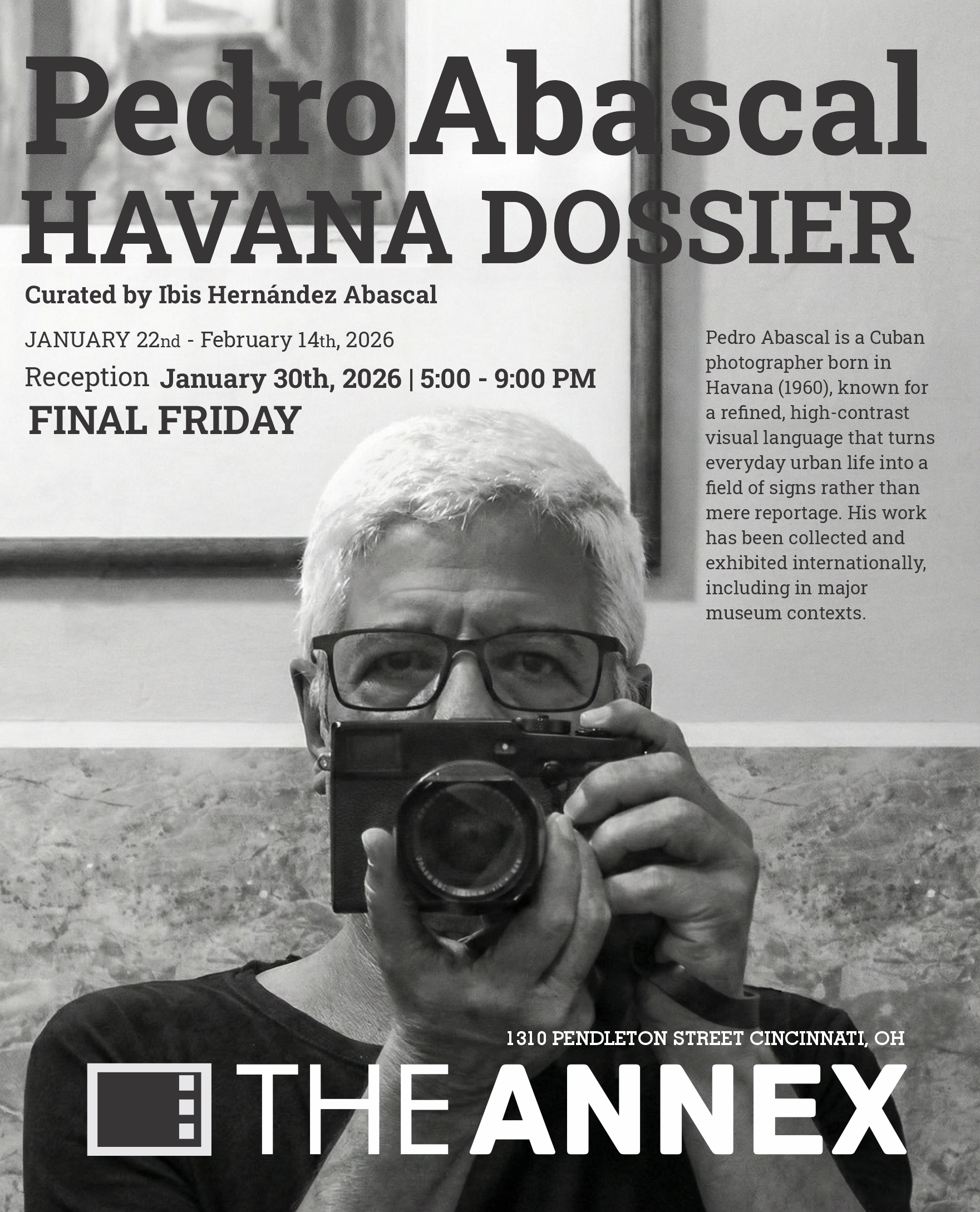 Recognized as an active member of the generation of photographers who reformulated in the 1990s the paradigm of Cuban photography inherited from previous decades, Abascal did not disdain the best of that tradition. He combined it with the legacy of significant international figures whom he studied in depth and assimilated critically and selectively, remaining aloof from the pressures of fashion. This has allowed him to imprint upon his work a personal stamp in which testimony and poetry fuse in an effective alloy, giving rise to images that invite sustained exploration—something equally evident in Dossier Havana.