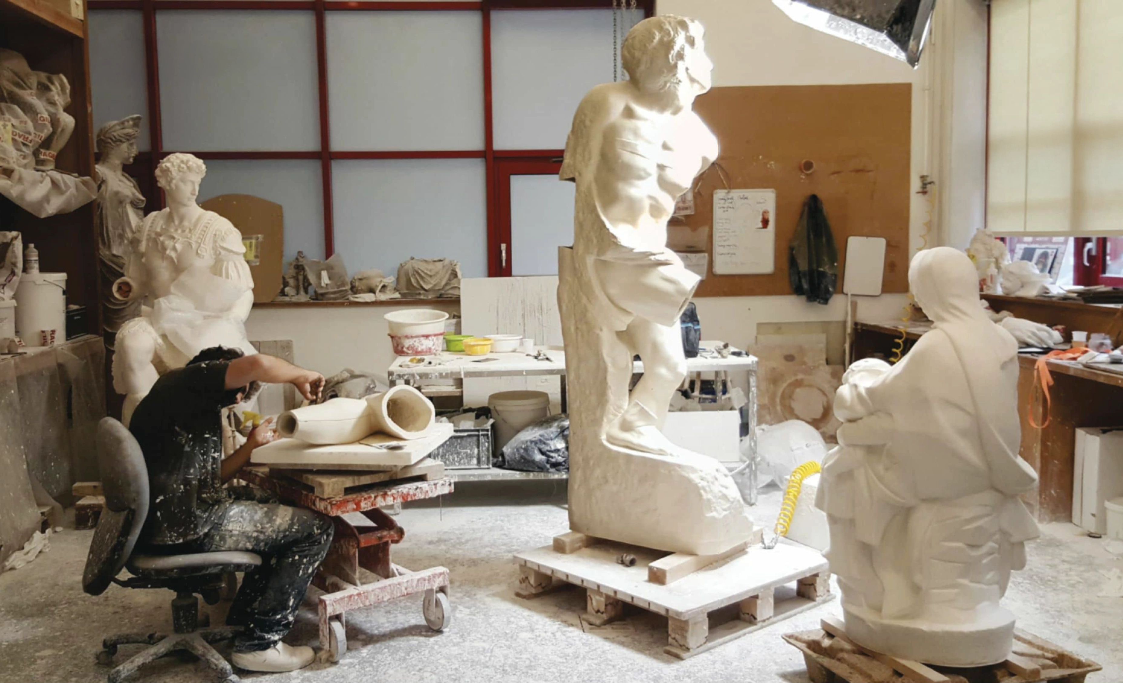 El recorrido por este taller revela salas de almacenamiento abarrotadas con miles de moldes escultóricos: esfinges, bustos aristocráticos, una Estatua de la Libertad, un Moisés de Miguel Ángel y más de una docena de Venus de Milo. El proceso comienza con una impresión física o un escaneo digital de la obra original para generar un “negativo”, del cual se obtienen réplicas idénticas, generalmente en resina por su mayor durabilidad frente al yeso, sobre todo en exteriores. Algunas versiones modernas, como la Marianne diseñada con transparencias provocativas, se cuentan entre las más vendidas.
