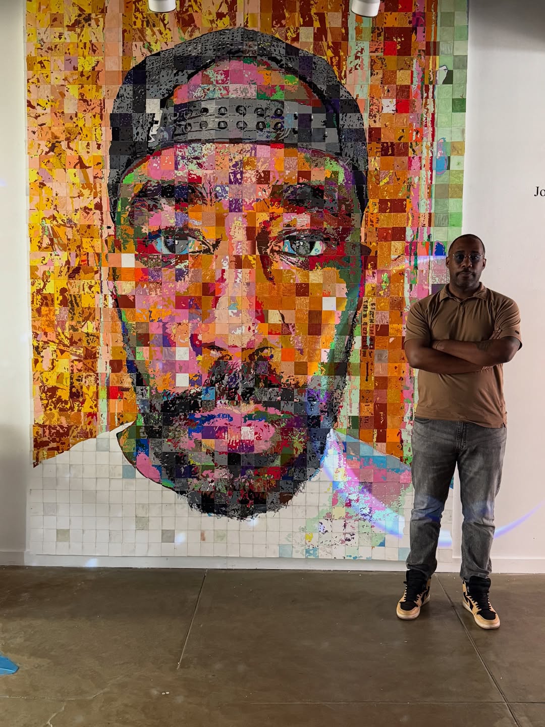 The conceptual heart of the show lies in a room of pixelated figures: an aesthetic decision aimed at “de-racializing” representation. How does one depict racialized bodies without making skin tone the primary signifier? Coppage’s answer is to privilege memory as the foundation of identity. “You may forget the color of their skin, but not how they made you feel,” he explains. This approach challenges racialized labels like BIPOC and African American, which he sees as confining rather than liberating. By removing racially coded features, Coppage interrupts normative perception and asserts ambiguity as a right: “I am more than Black. I am more than an artist.”