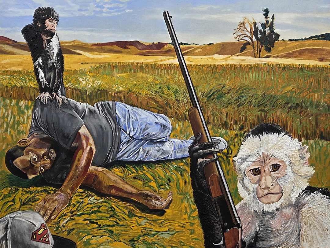 Another thematic thread addresses hip hop as a tool of resistance—and its subsequent dilution by the cultural mainstream. Through the figure of Prosper Jones—a character Coppage created in his youth to survive the streets of Chicago—the artist recovers the genre’s radical origins. Works like The Players Club invert the tropes of commercial rap by portraying athletes who reinvest in their communities. The irony is precise: “We must constantly rewrite imposed narratives through our own cultural production.”