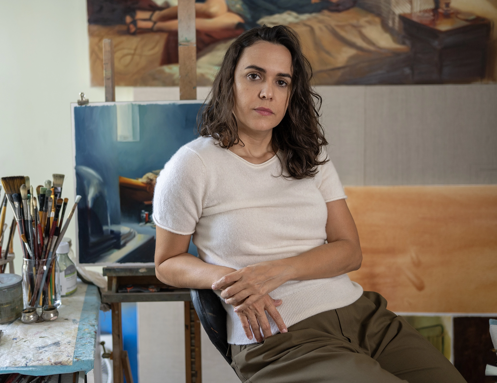 Su pintura tiene la sobriedad de la intimidad. Mujeres —casi siempre— en interiores, detenidas en el escenario de un tiempo ambiguo, dentro de habitaciones donde la luz no solo revela: también oculta. Sus cuadros no cuentan historias; las contienen. Son atmósferas detenidas entre lo que fue y lo que aún no se ha revelado. Y aún cuando no se entiendan del todo, se las intuye. Lo verdaderamente importante en la vida puede prescindir de las palabras.