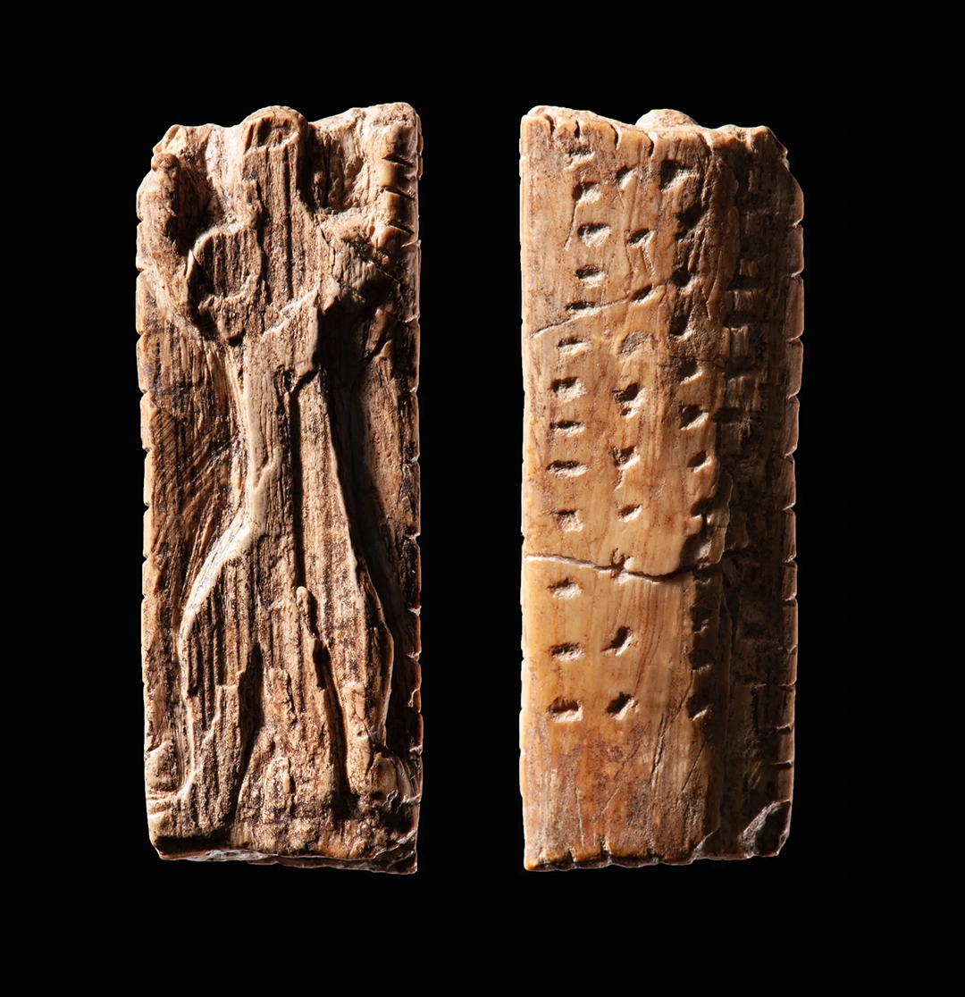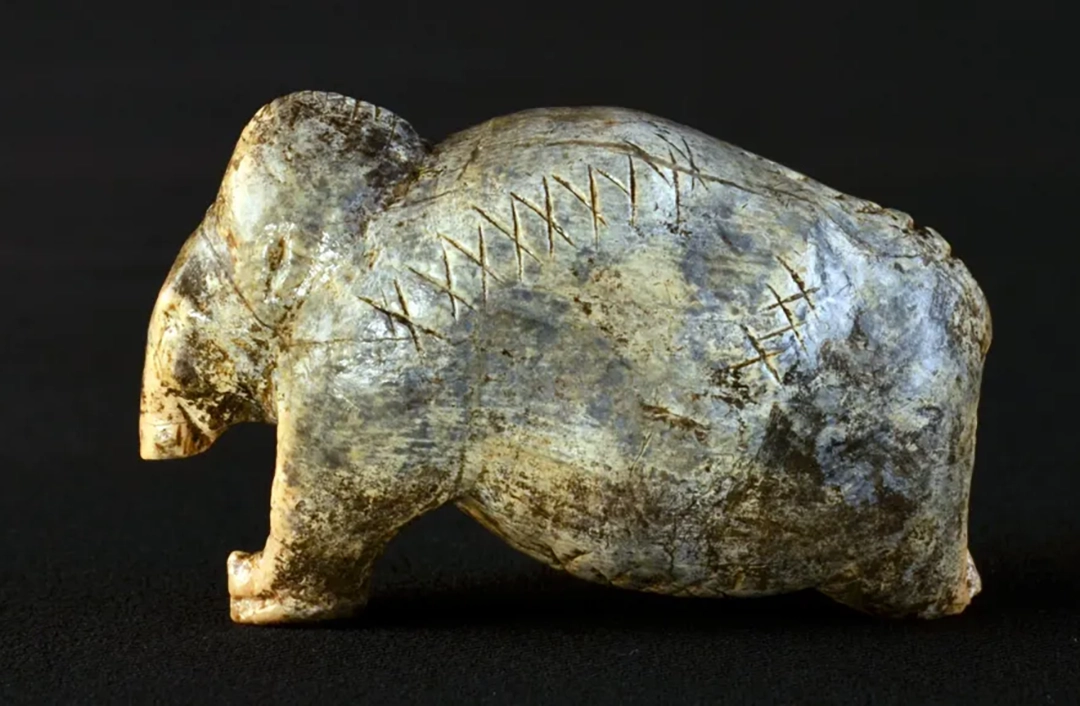 A 40,000-year-old mammoth figurine with engraved rows of crosses and dots.