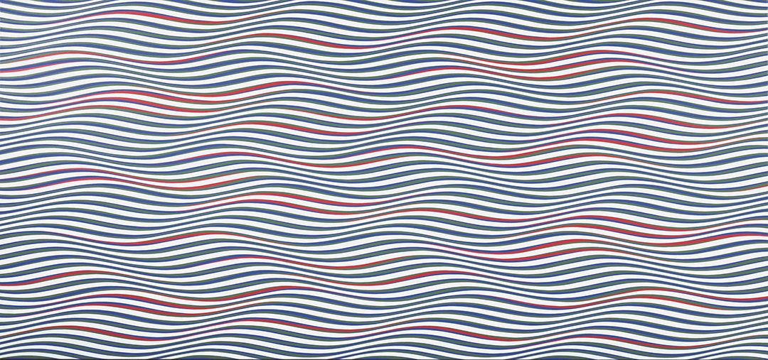 The exhibition brings together 26 paintings spanning nearly every stage of her career and traces the evolution of her work from the abstract, geometric compositions of the 1960s to later works structured around undulating lines and repetitive systems—a panoramic view of more than six decades of sustained artistic production.