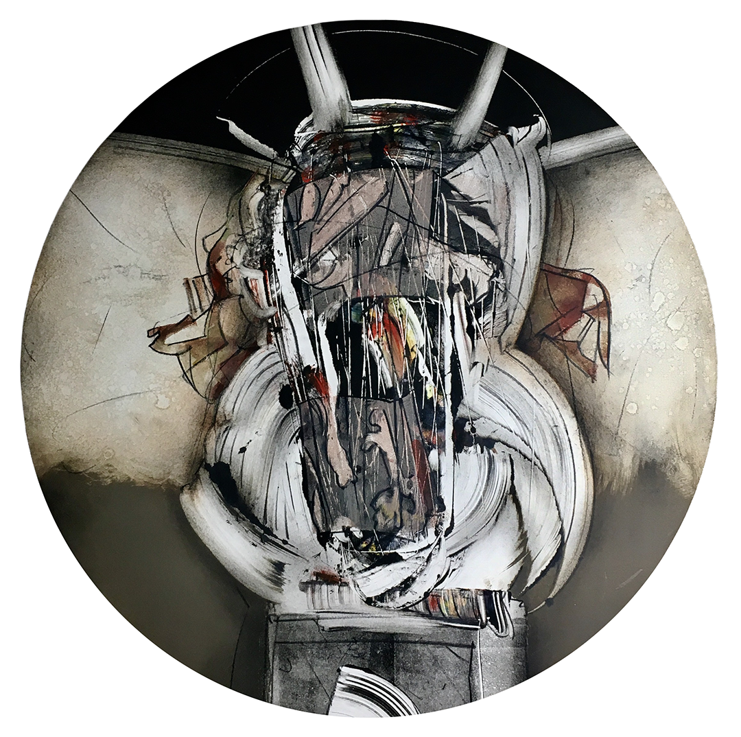 Conozco la obra de la mayoría de los artistas que forman parte de este proyecto. Estoy familiarizado con su obra en el formato 'regular' o 'acostumbrado'. Y percibo, quizás intoxicado de tanta rotación en torno a un punto de giro, que nada se asienta, que los paisajes que estos bastidores circulares encierran, está en permanente suspensión. Que cada intento de asentamiento es fragmentado por un brusca agitación, que los elementos parecen fijados para maniatar su desobediencia.