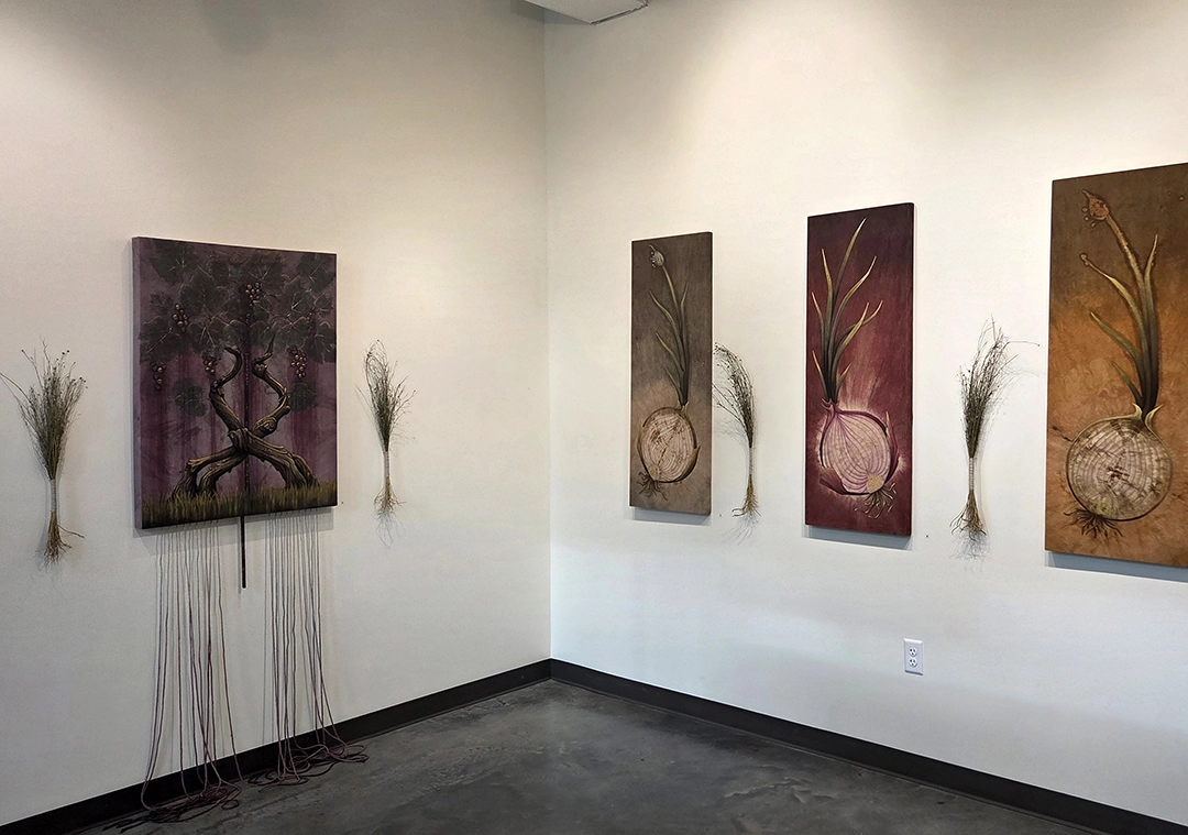 Deeply rooted in family traditions of gardening and cooking, her practice explores the intergenerational relationships among plants, people, and place. Recurring motifs of onions, walnuts, and grapes—foods laden with both personal and cultural resonance—serve as axes for a reflection on nourishment, endurance, and connection. Through her thoughtful engagement with natural materials, Horton invites us to consider the extent to which we are inseparable from our environment, and how the act of tending—to the land, to one another, to memory—can be both labor and love.